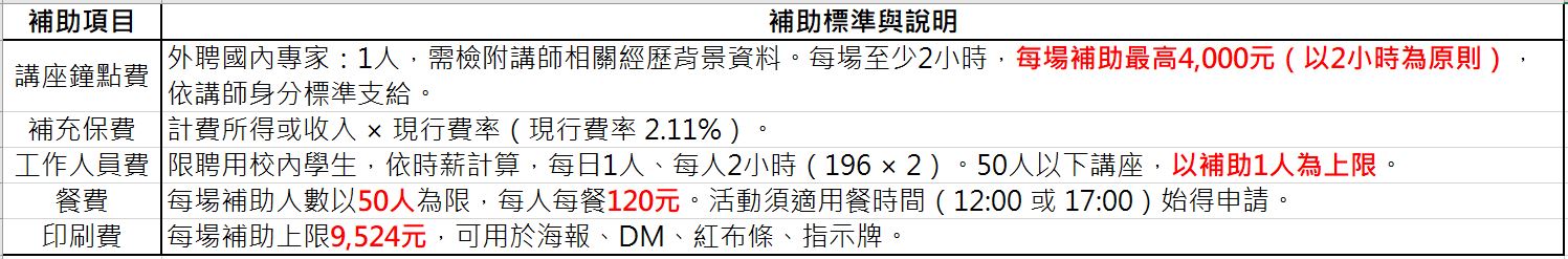 三、 經費補助標準