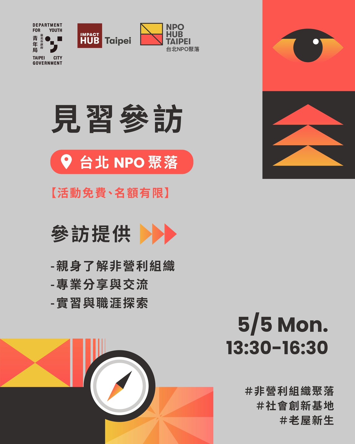 社會創新組織見習參訪報名:https://www.accupass.com/go/npohubtaipei