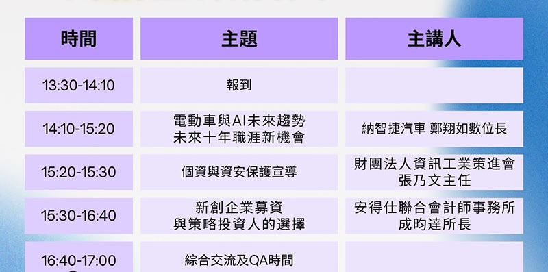 5/21場|13:30-17:00 【探索創新未來:從電動車、AI趨勢到新創企業投資】