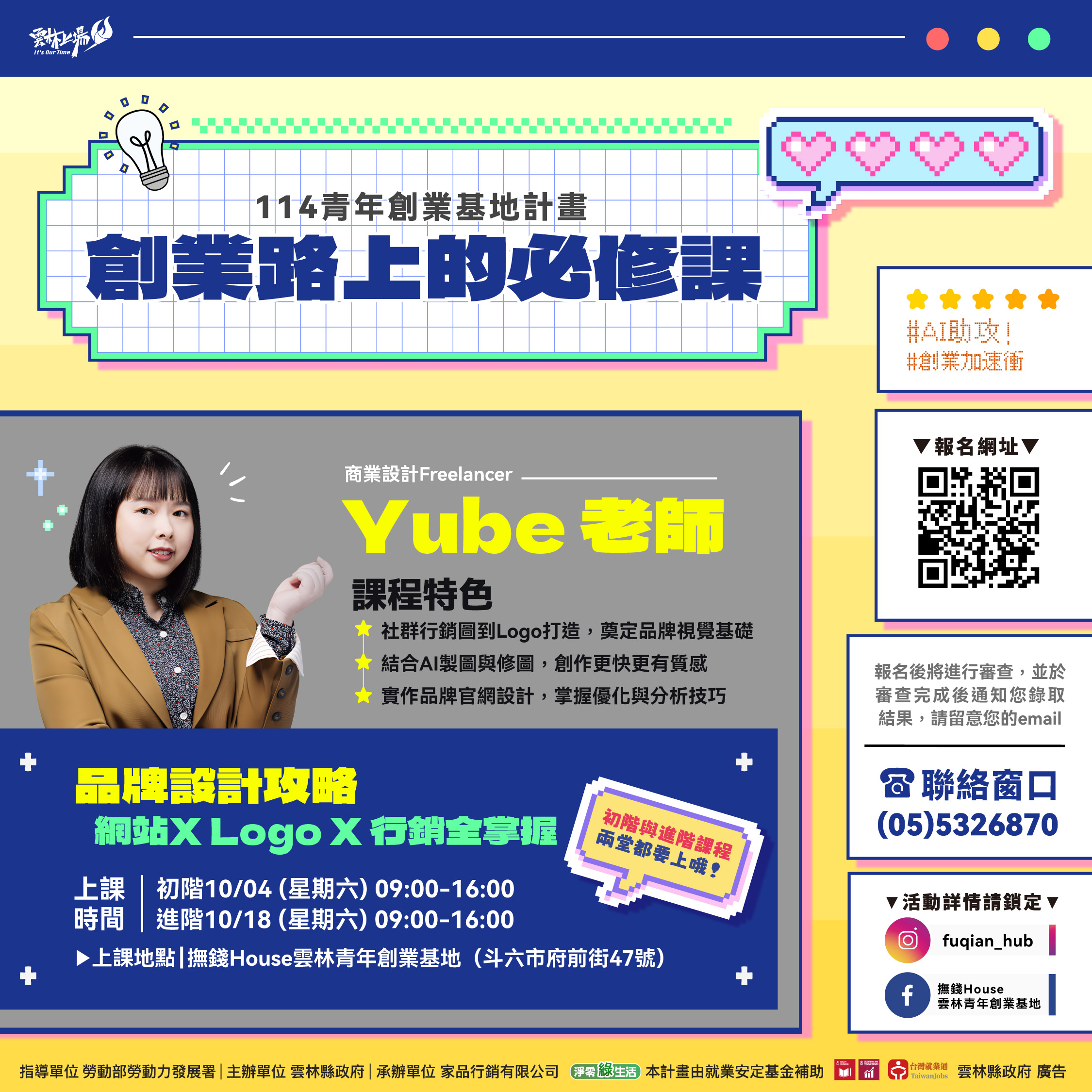 聯絡窗口:05-5326870(撫錢House雲林青年創業基地服務專線)。
